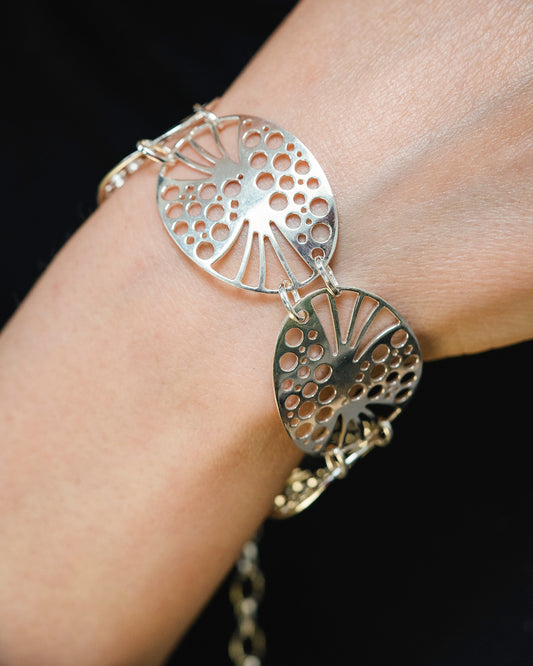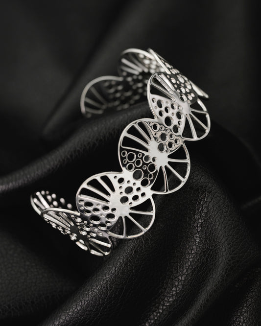 De bløde former og symmetriske designs omsætter sommerfuglens flygtige skønhed til et varigt symbol. Et grafisk, stilfuldt og tidsløst statement, med fodfæste i sølvsmedens ældgamle håndværks-traditioner.