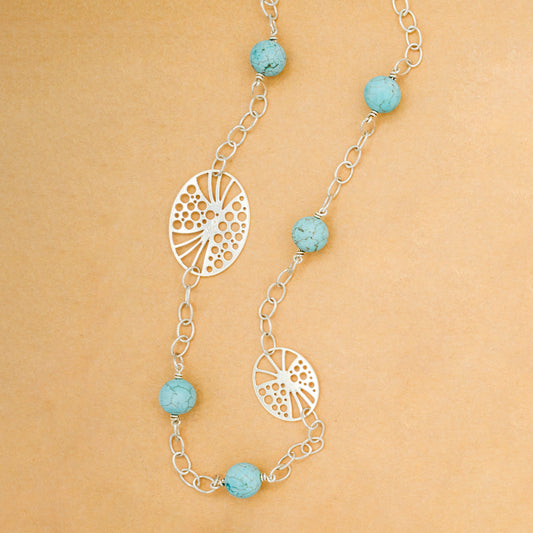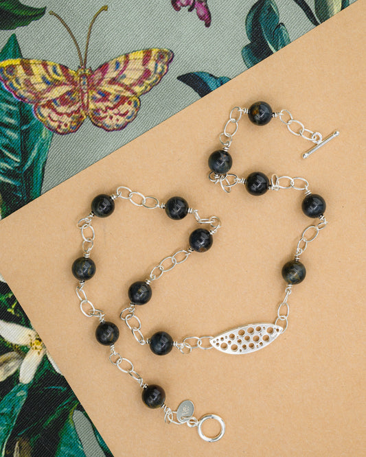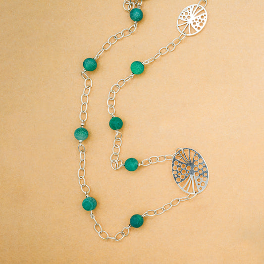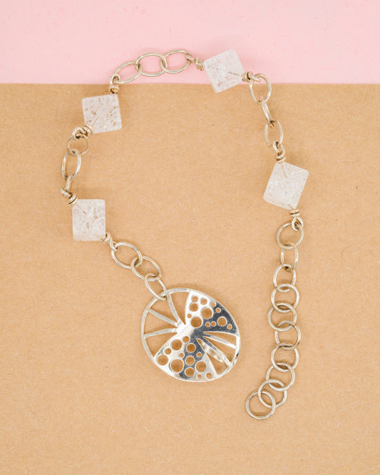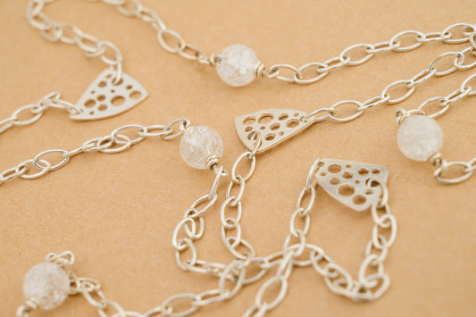 Sølvkæde med sommerfugletema og bjergkrystal, lang