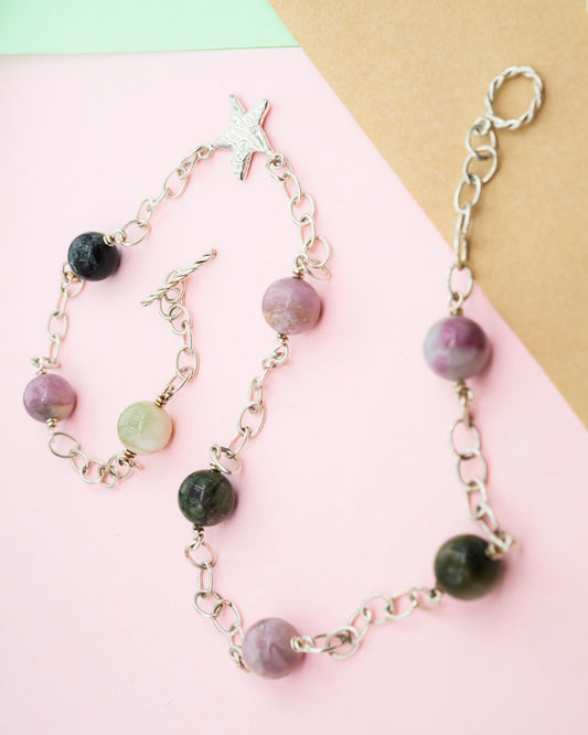 Halskæde med sølvstjerne og turmaliner