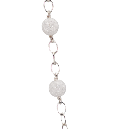 Sølvkæde med sommerfugletema og bjergkrystal, lang