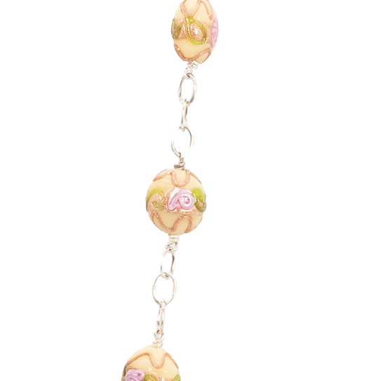 Colorful World Halskæde med Beige med guld og lyserøde roser glas