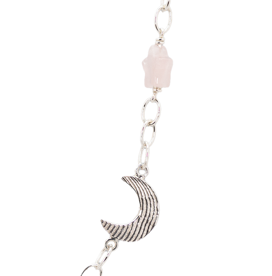 Halskæde med rosakvarts stjerner og sølvmåne