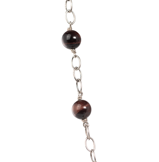 Halskæde med sten af drageblodsjaspis og en sølvblomst