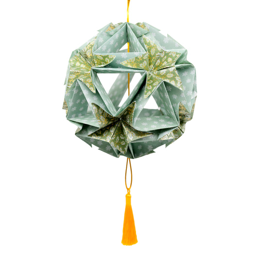 Stor juledekoration af papir, lys grøn og sølv