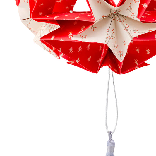 Stor juledekoration af papir, rød & sølv