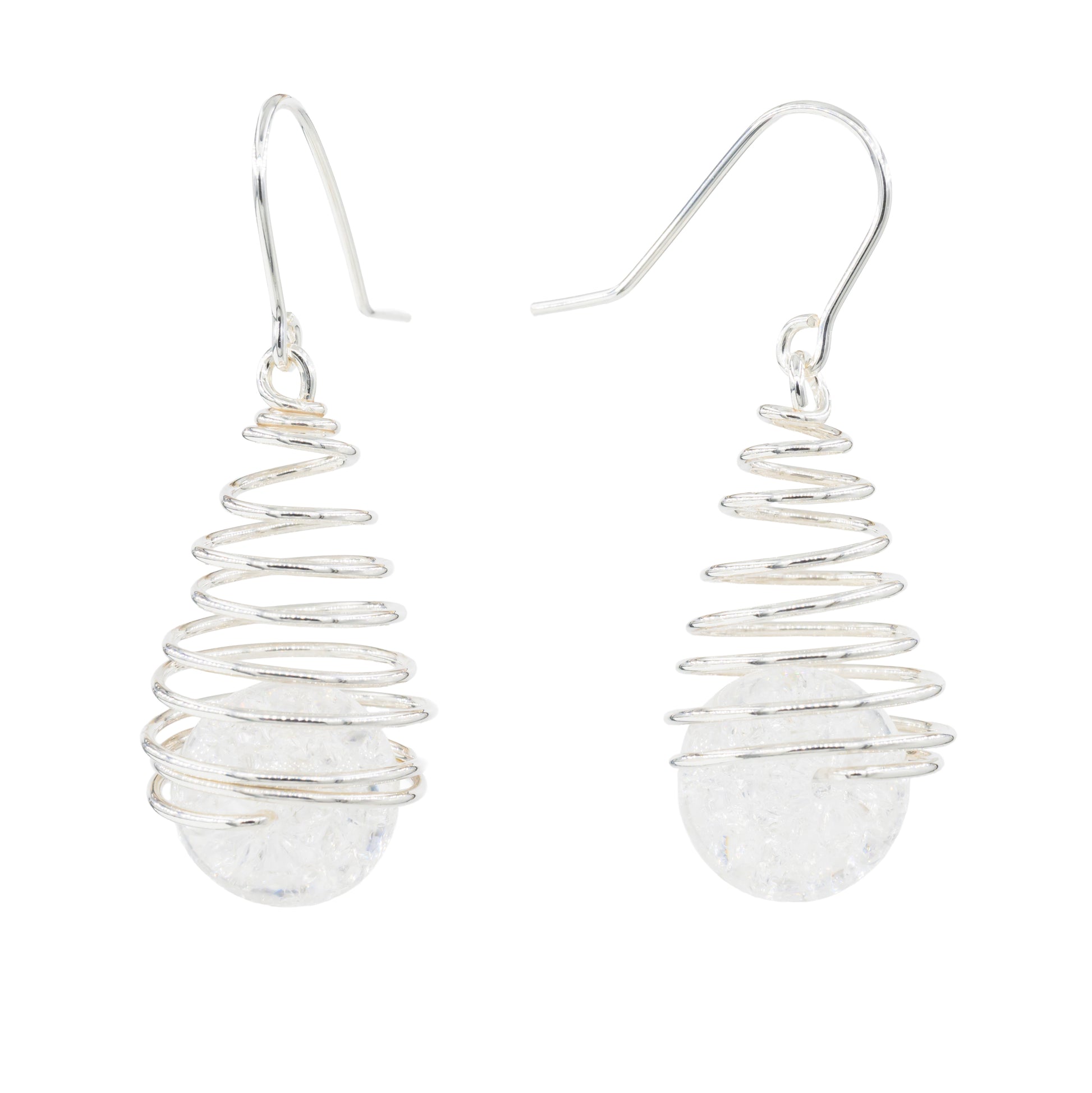 A pair of spiral earrings with clear, bright rock crystal stones, handcrafted from twisted sterling silver. Rock crystal is believed to bring clarity, balance and harmony to the wearer, improving both physical and mental well-being.
