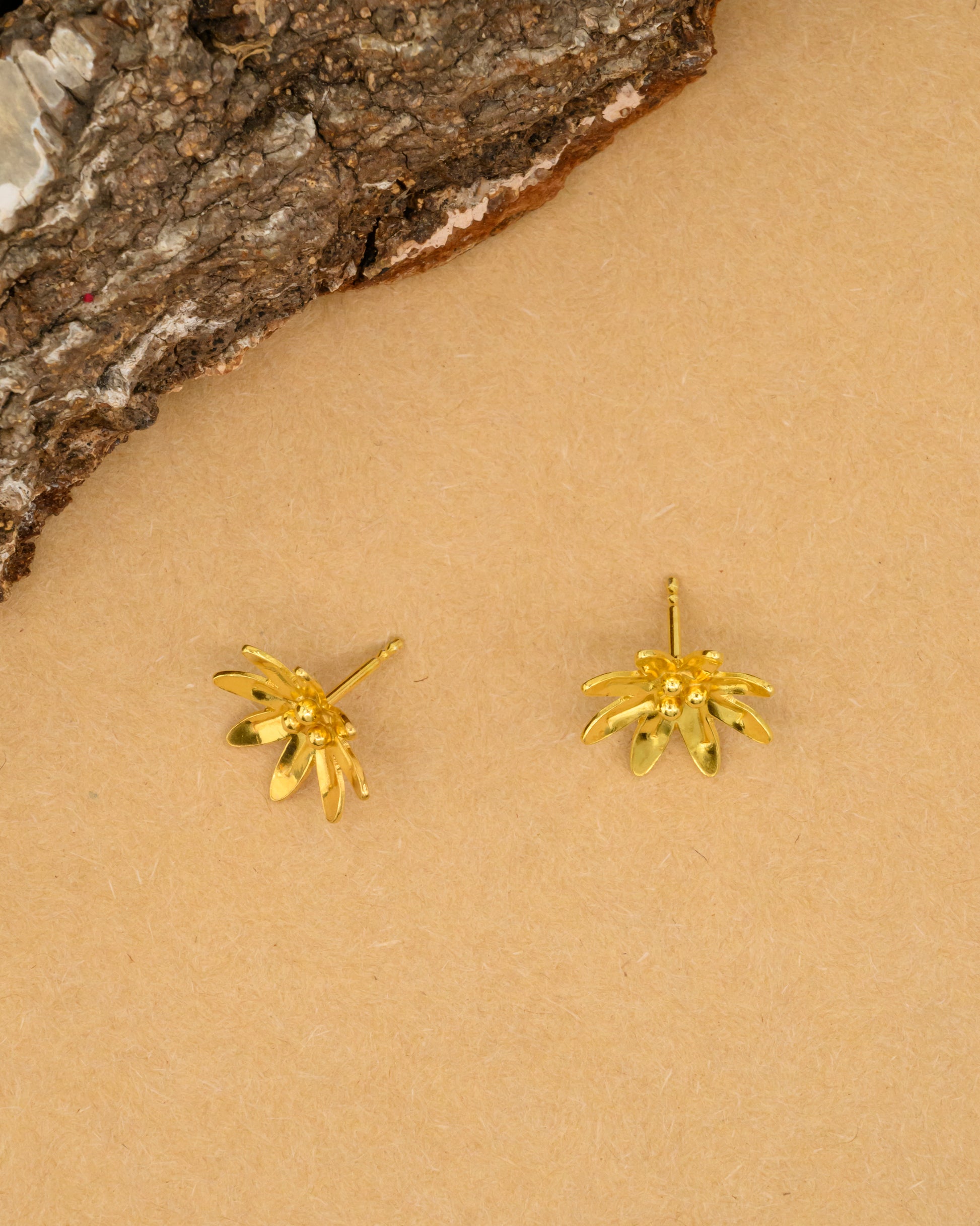 Yvonne small earrings are the smallest and simplest version of the Yvonne flower jewelry. Each earring is handmade by Therese Følsgaard in sterling silver, and in this case then plated with a thin layer of gold.