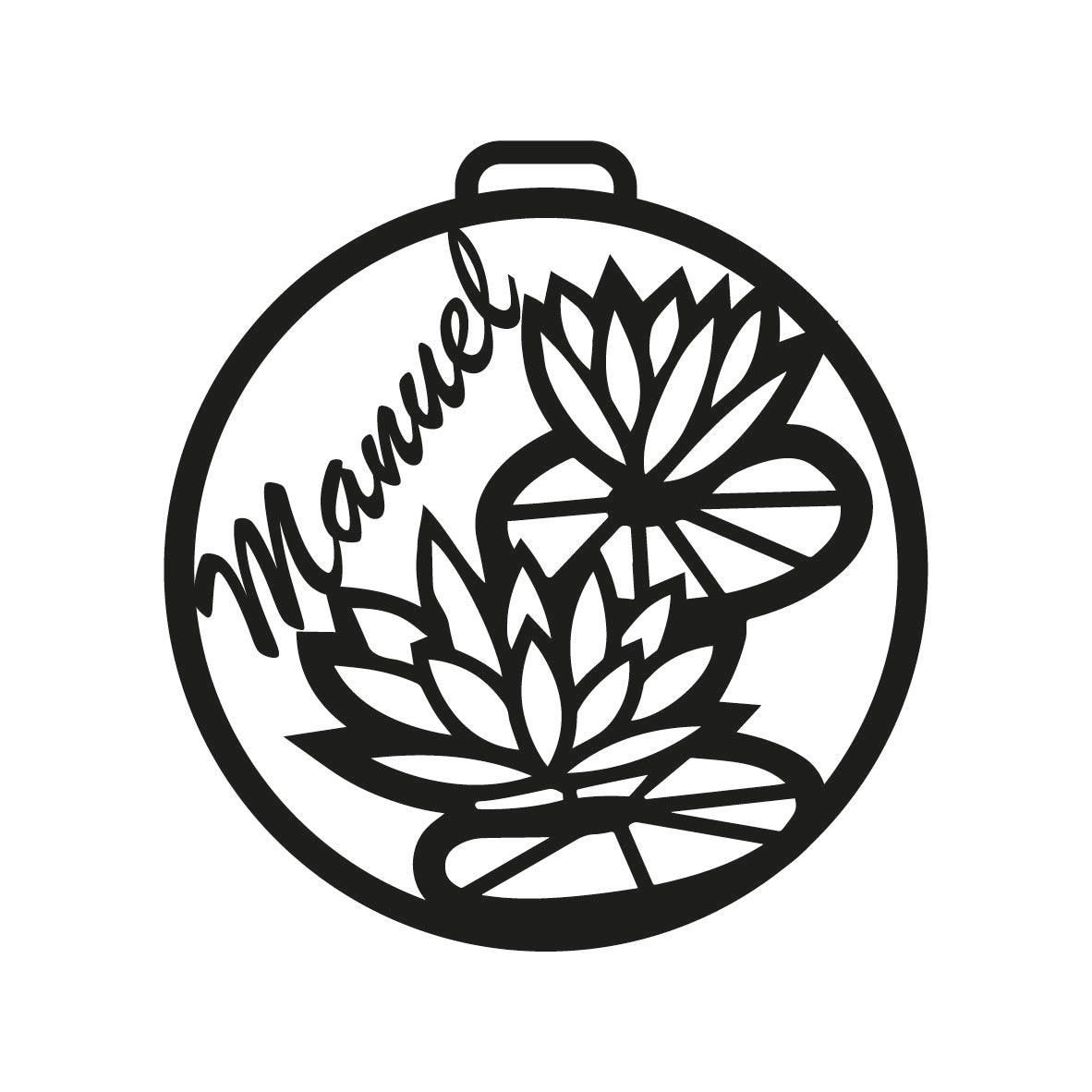 Denne smukke håndlavede pynt med et elegant motiv af åkander bringer ro og naturlig skønhed ind i dit hjem. Den kan tilpasses med enten et navn eller et årstal, hvilket gør den til en personlig og unik gave, der kan fejre særlige øjeblikke såsom dåb, konfirmation eller et bryllup – eller blot til at mindes et år, der har haft særlig betydning.