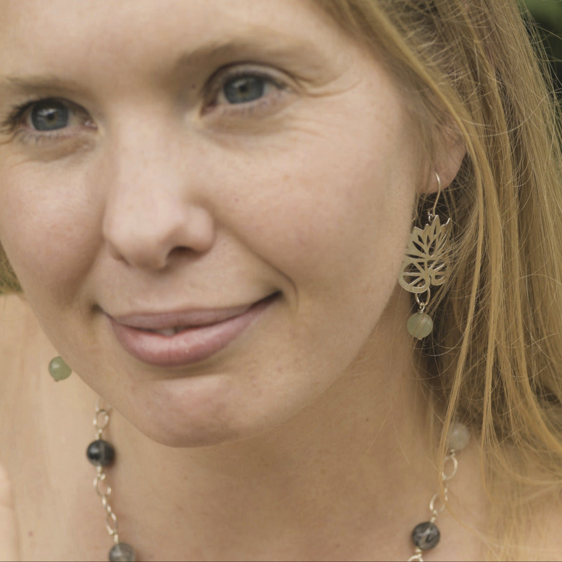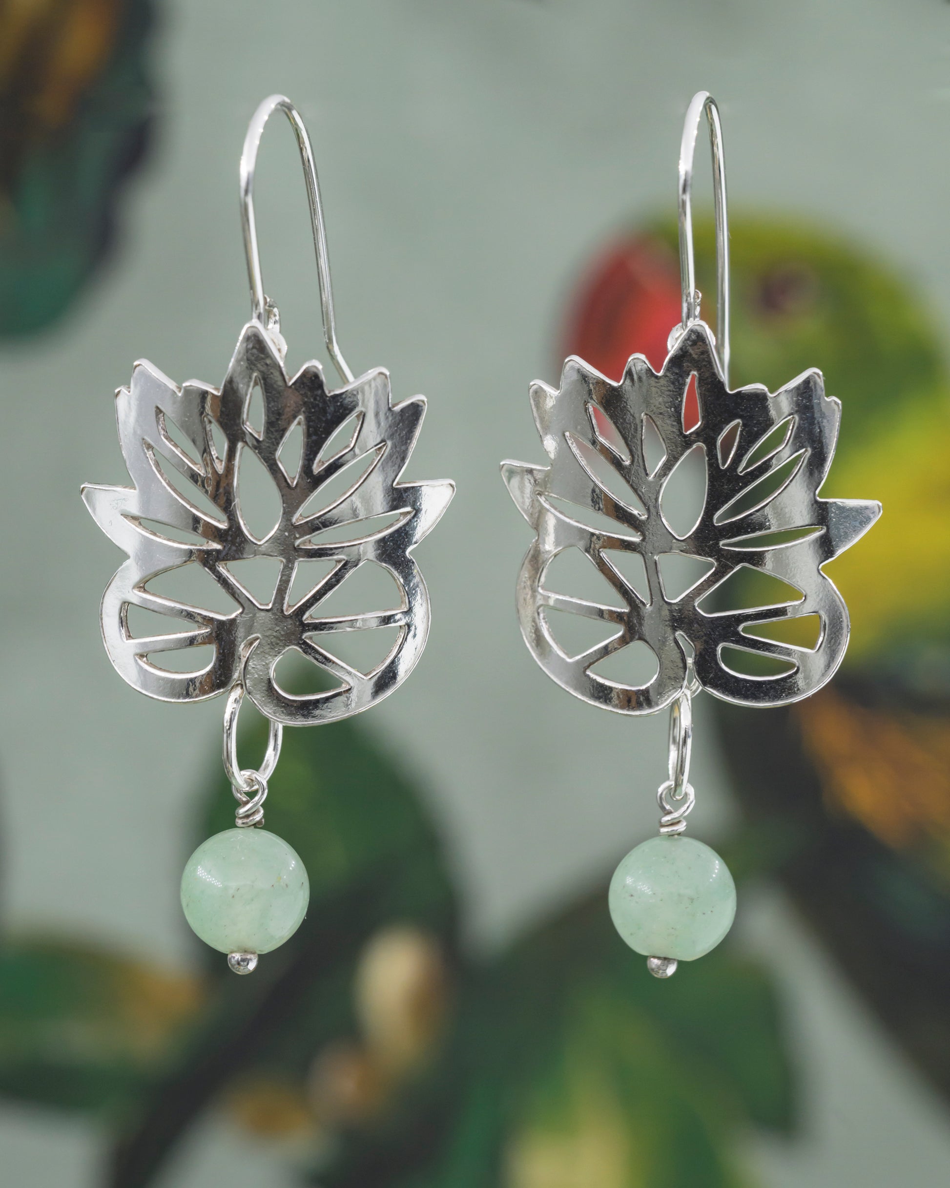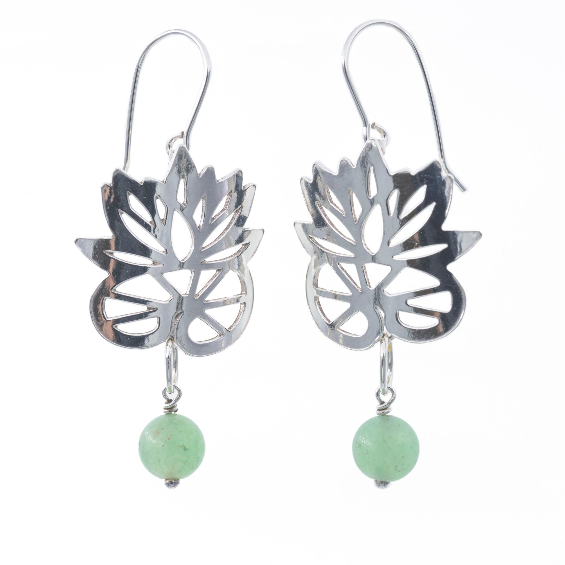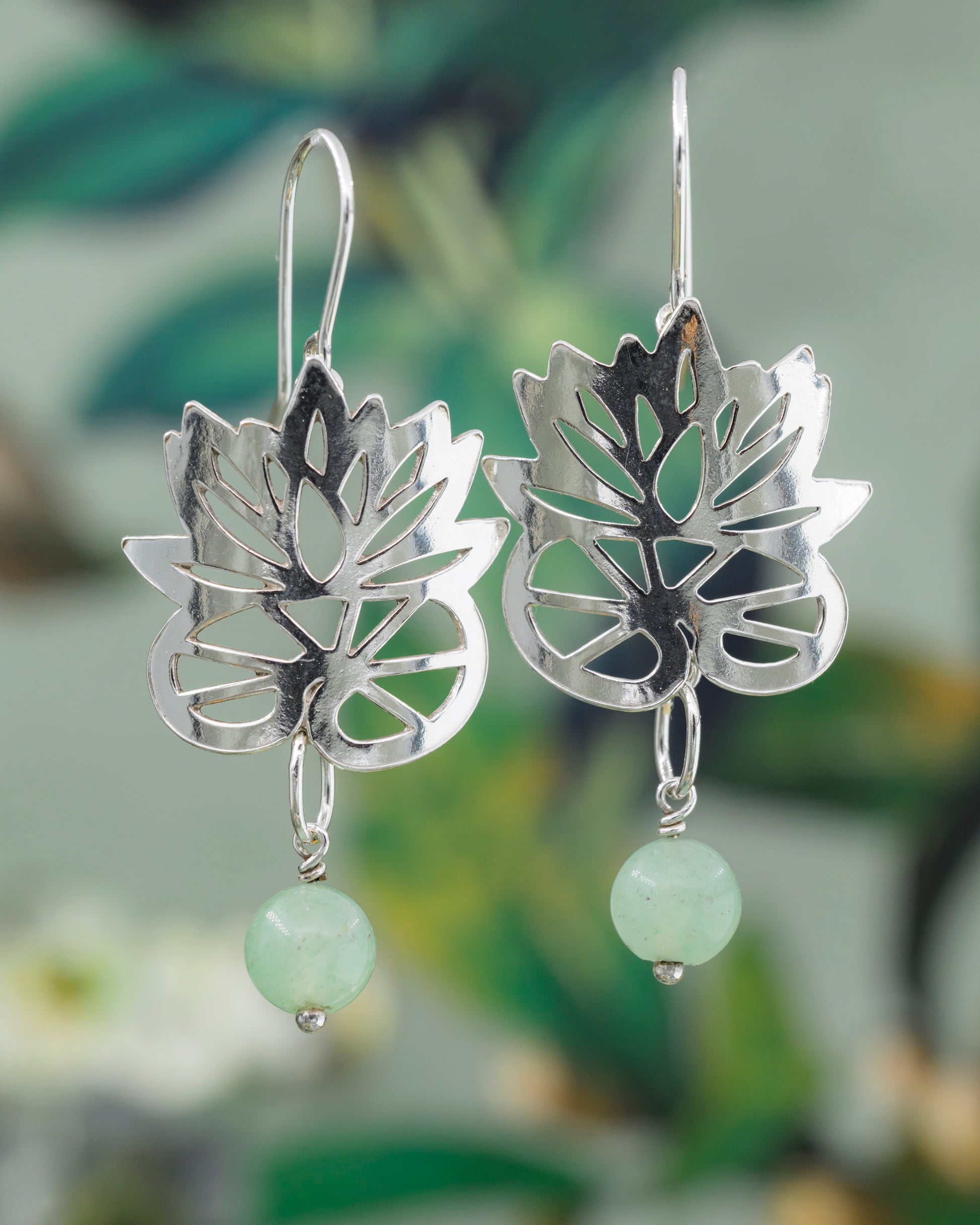 Monet & Me ørehænger med aventurin, håndlavet af Therese Følsgaard i sterling sølv og inspireret af naturens blomster. Øreringene består af en åkande af sølv, hvorfra en natursten hænger og tilfører let bevægelse og dybde.