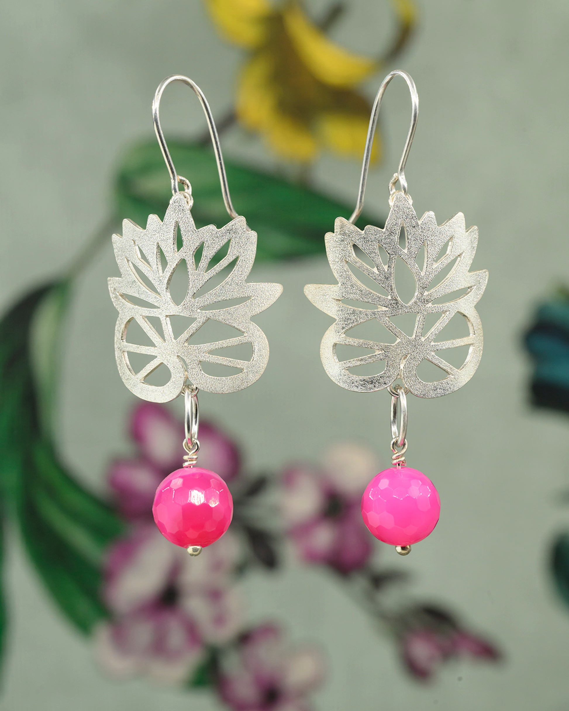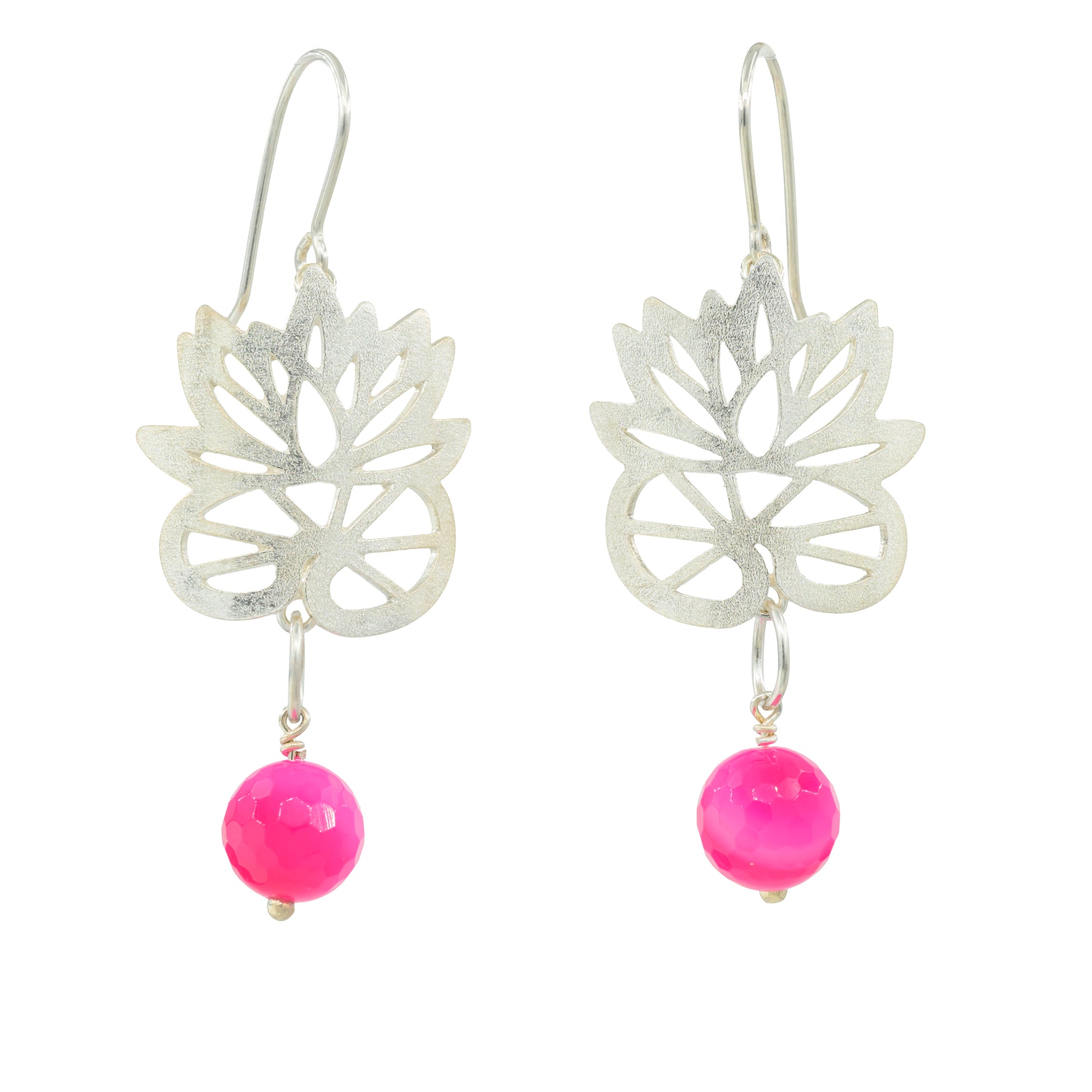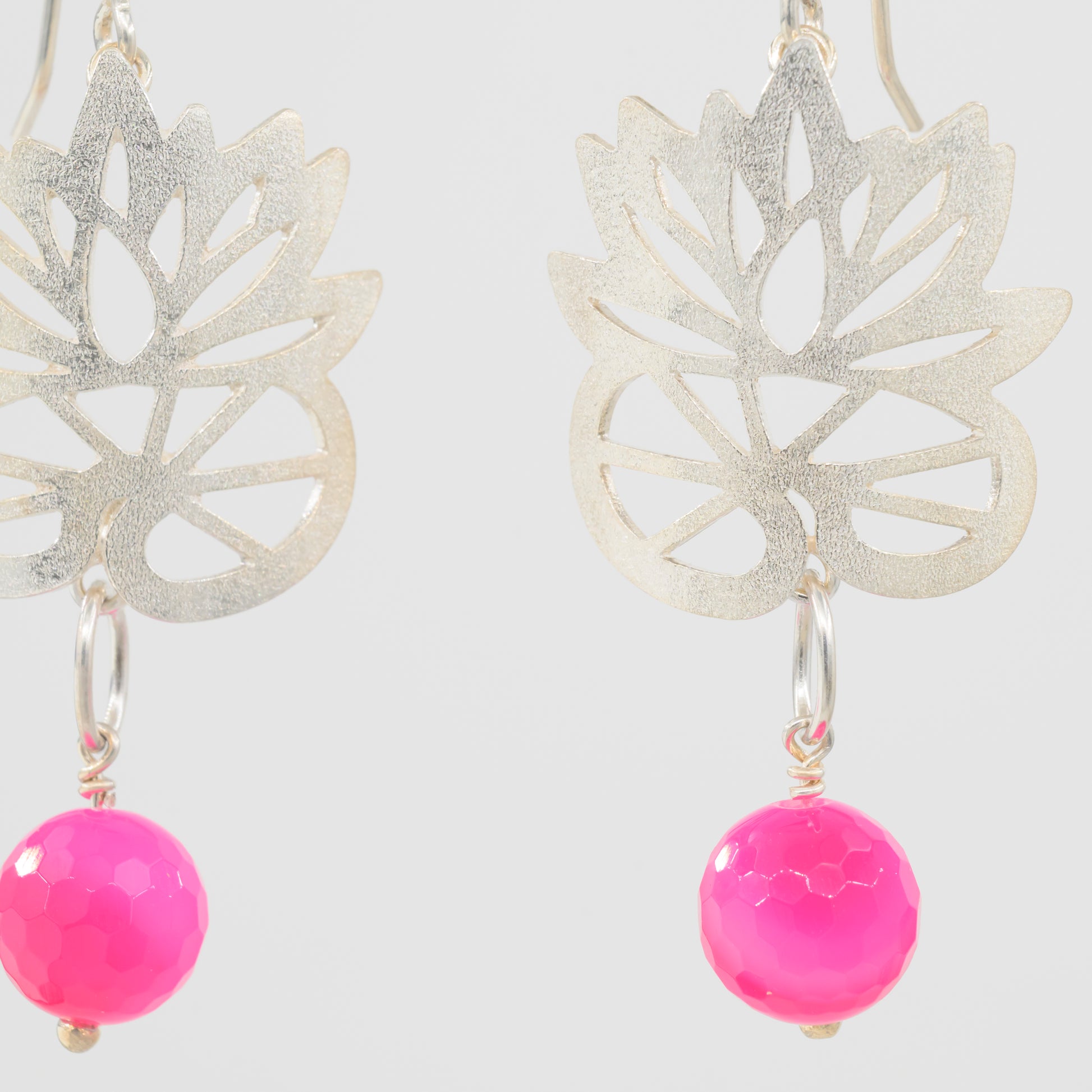 Der findes kun dette ene smykke – Monet & Me ørehænger med facetteret pink agat, håndlavet af Therese Følsgaard i sterling sølv med en lækker frosted overflade og inspireret af naturens blomster. Øreringene består af en åkande i sølv, hvorfra en natursten hænger og tilfører let bevægelse og dybde.